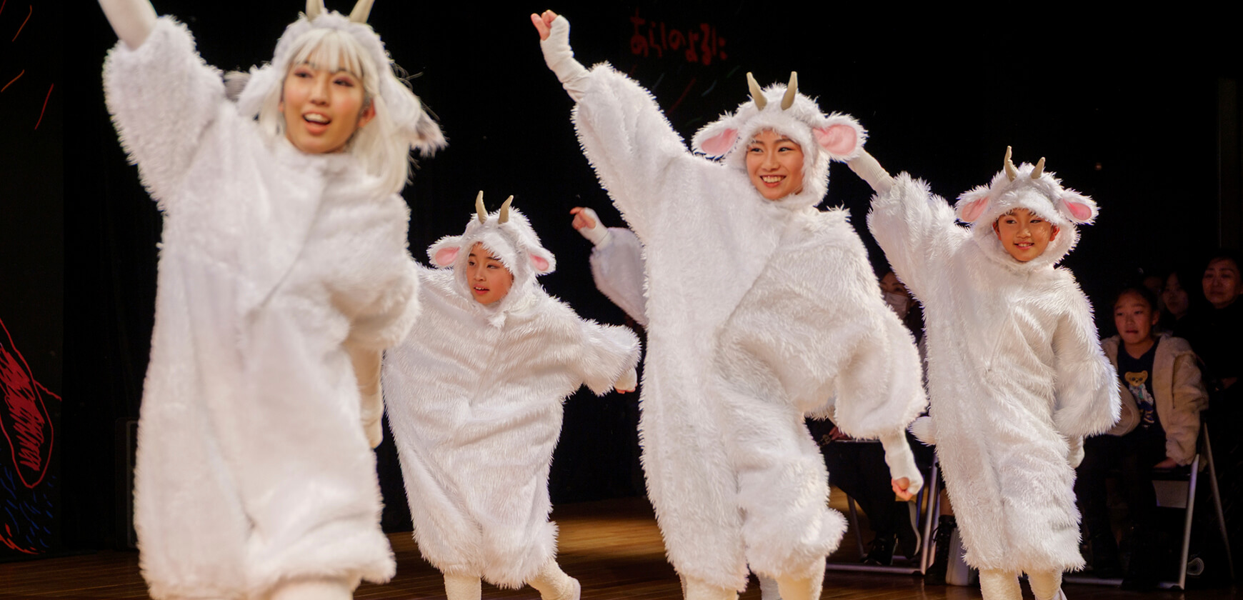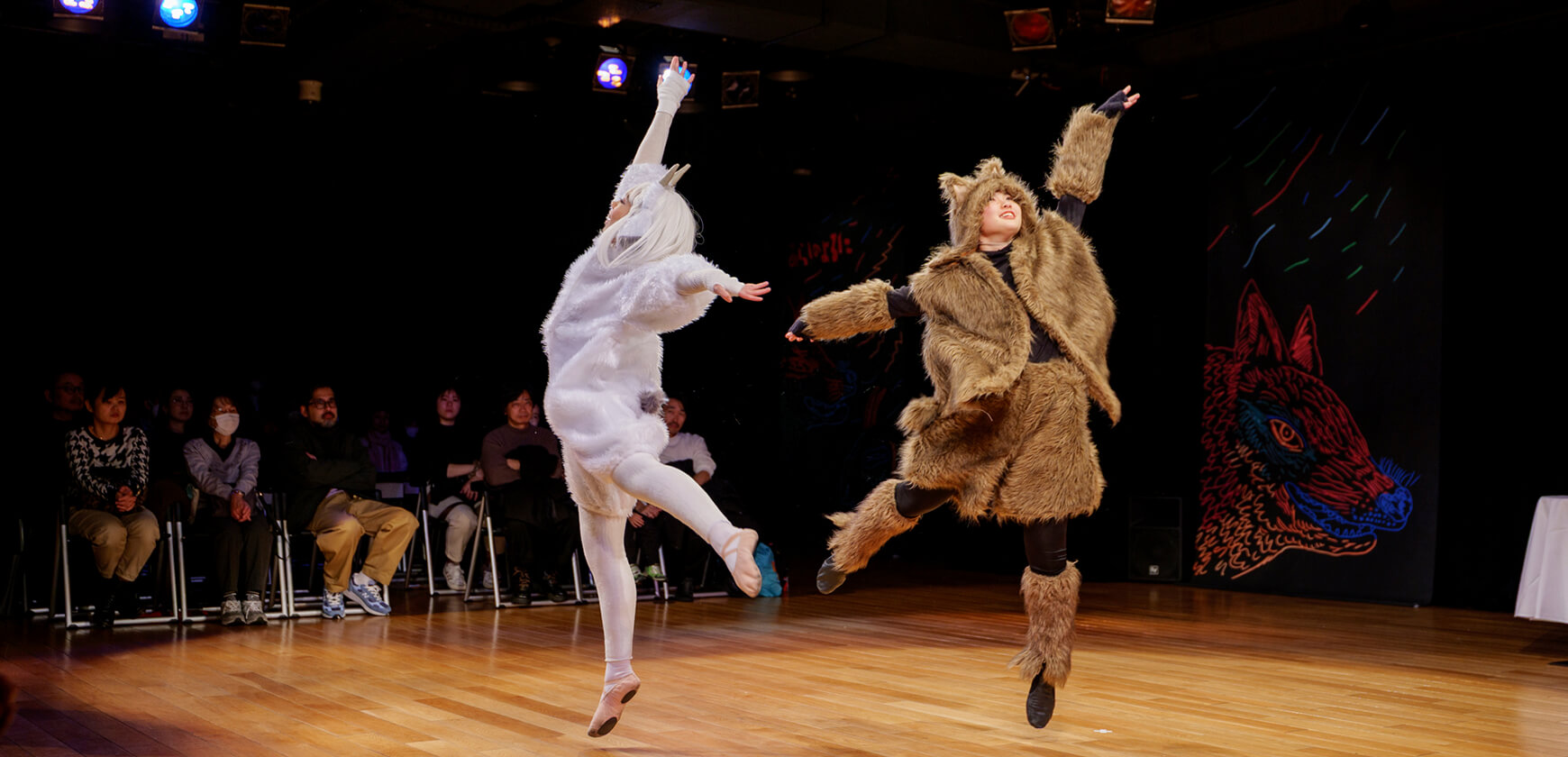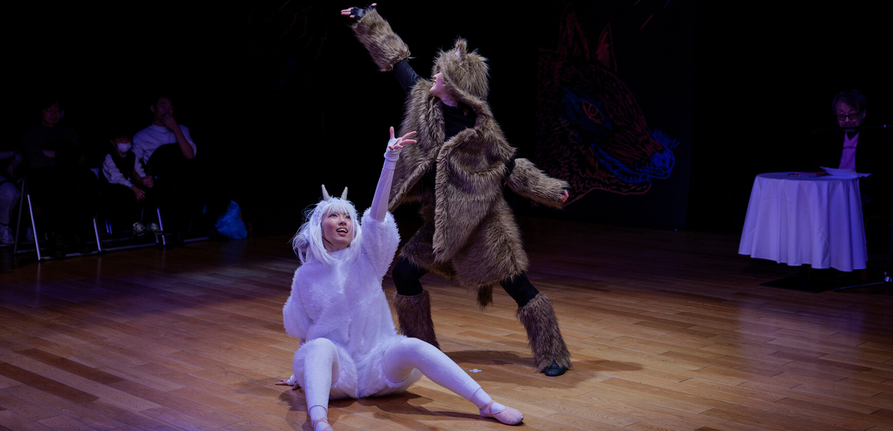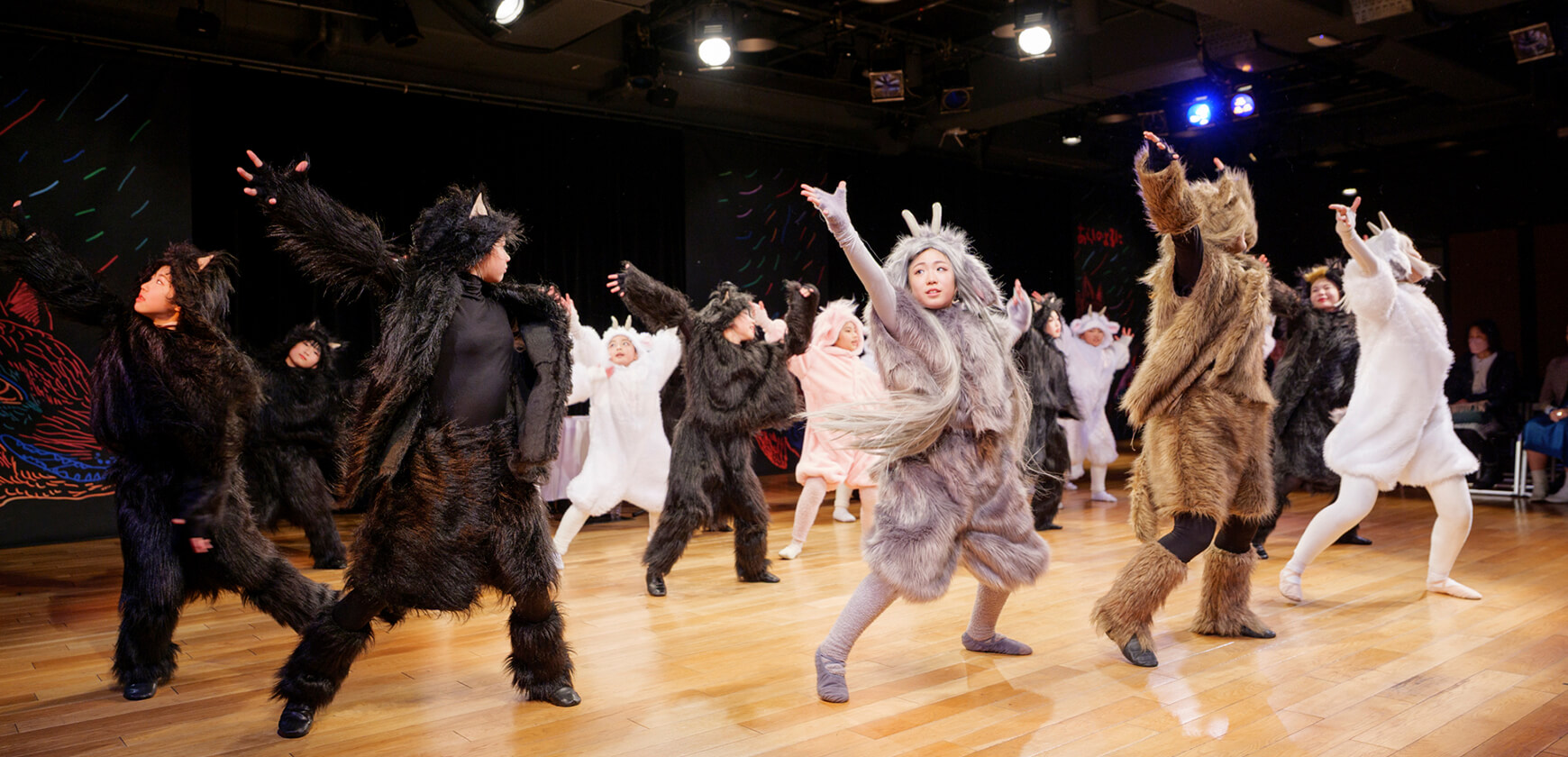 本公演では、名作絵本『あらしのよるに』の世界を、朗読とともに児童劇団Caratの子どもたちがダンスという身体表現で描き出しました。言葉だけでなく、動き・表情・リズムを通して物語の感情を伝える児童劇団Caratならではのステージは、会場を静かな感動で包み込みました。